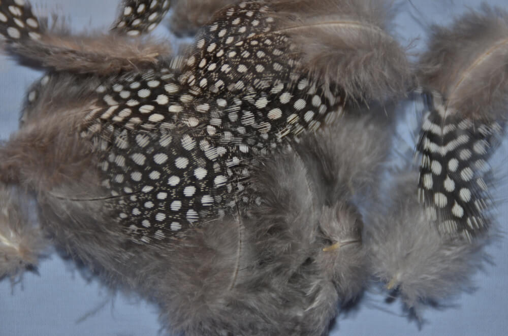 Die Perlhuhn Federn (flauschig-klein) sind natürlich und nicht eingefärbt. Sie sind von Natur aus gepunktet. Die Federn sind nicht gleich lang und können kleine Schönheitsfehler aufweisen.